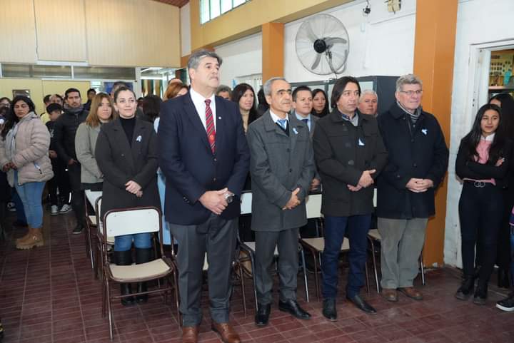 Mario Abed, intendente de Junín, estuvo acompañado de Ricardo Morcos, presidente del Honorable Concejo Deliberante; Mario Ana, senador provincial; Liz Villegas, reina departamental de la Vendimia; ediles, funcionarios, docentes y alumnos.