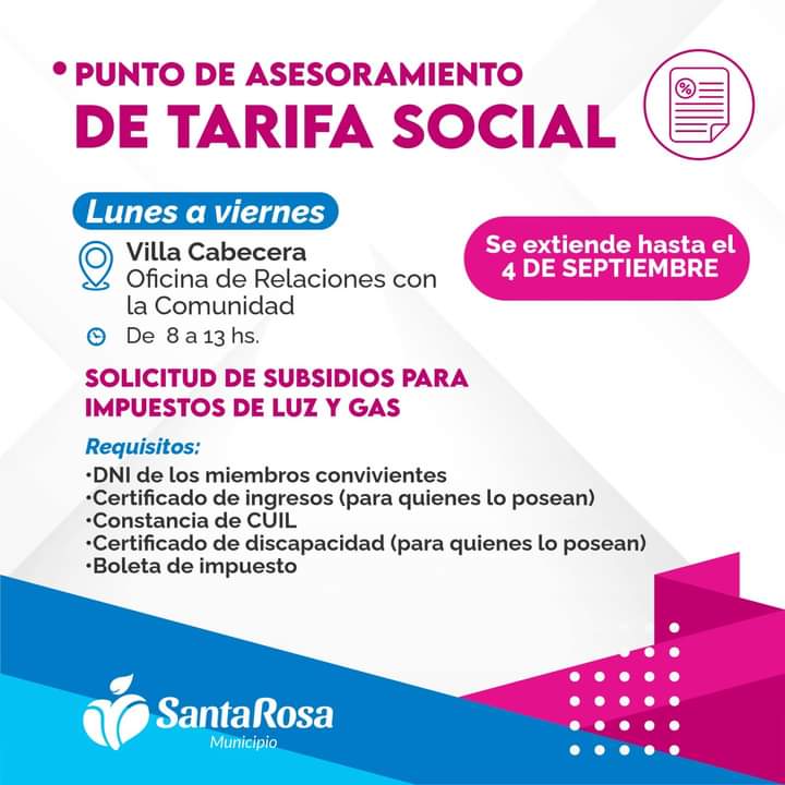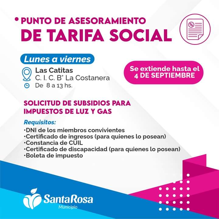 Las Catitas, a partir de ahora, ofrece un nuevo “Punto de asesoramiento de tarifa social” para facilitar el acceso a subsidios para los impuestos de luz y gas. Este servicio estará disponible de lunes a viernes, de 8 a 13 hs., en el Centro Integrador Comunitario (C.I.C.) del Barrio La Costanera.
