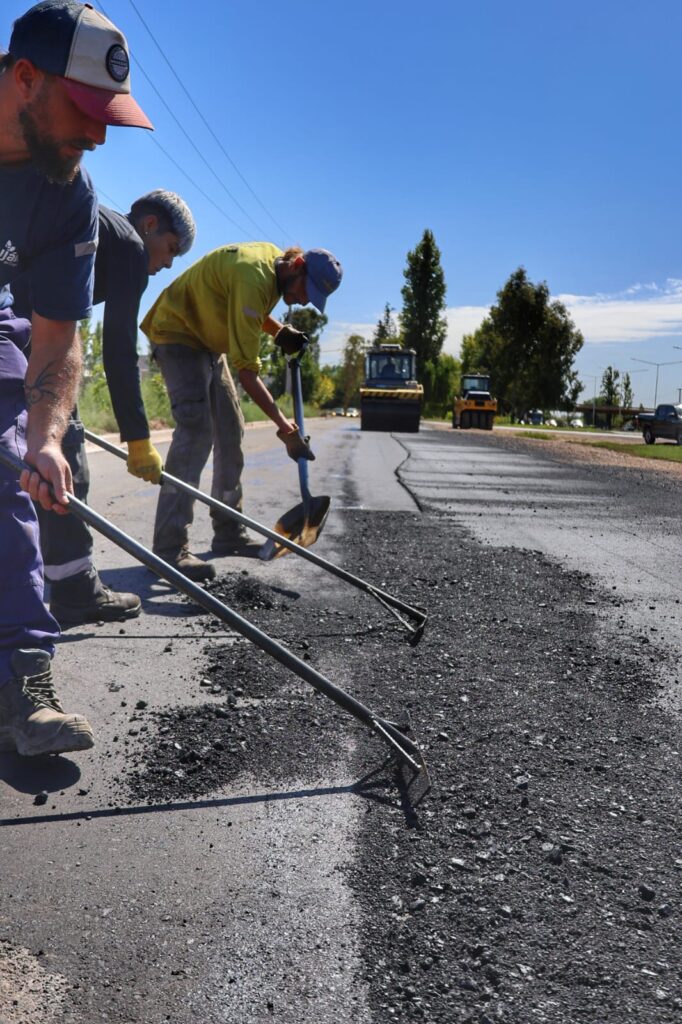 En este marco, se llevan adelante trabajos de pavimentación en el lateral oeste del Acceso Sur, en el tramo comprendido entre calles Boedo y Castro Barros, una intervención estratégica vinculada al desarrollo de la futura tercera trocha de la Ruta 40.