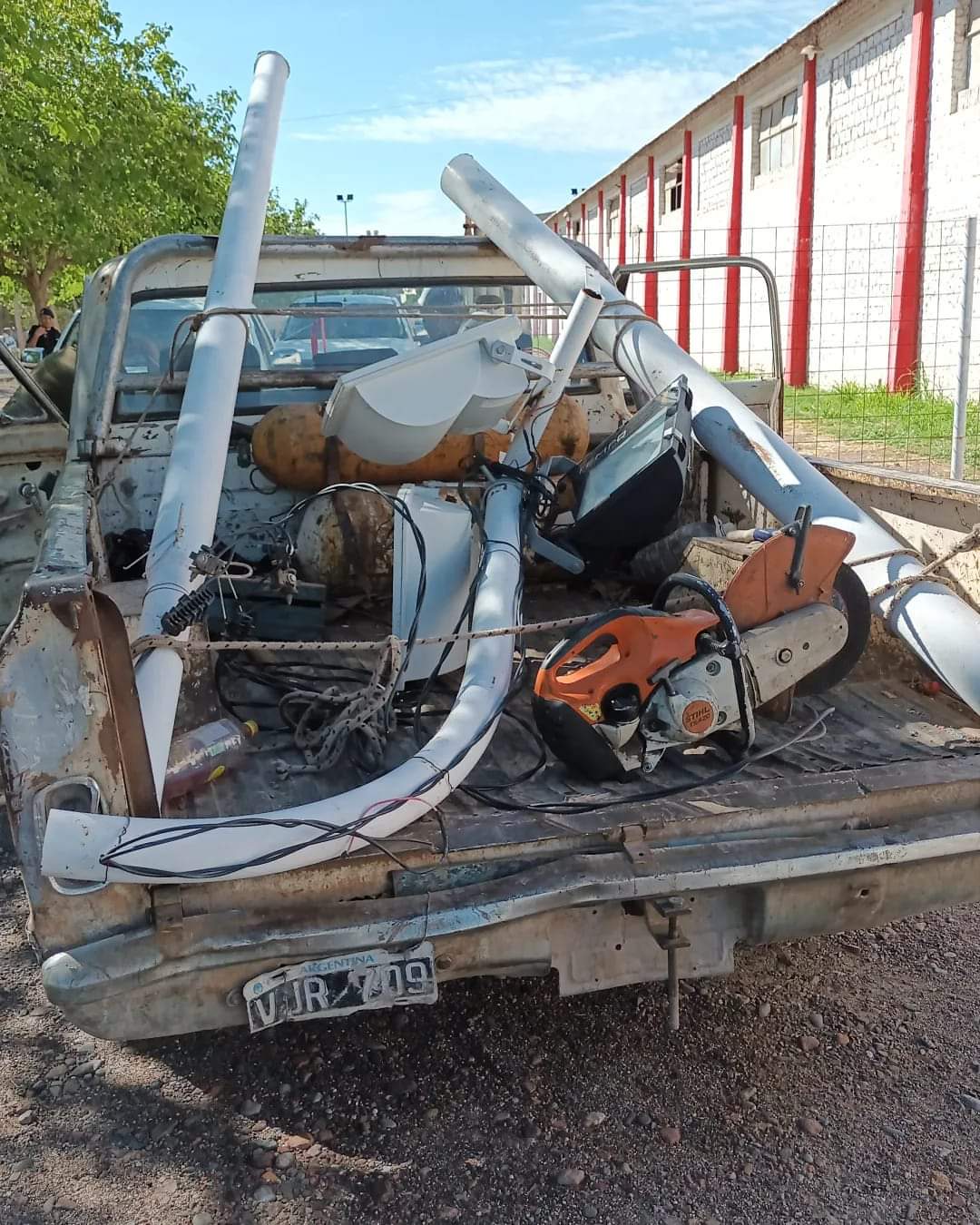 En el día de hoy a las 10 de la mañana intentaban llevarse 2 luminarias mas completas cuando fueron sorprendidos y se pudo detener el robo.