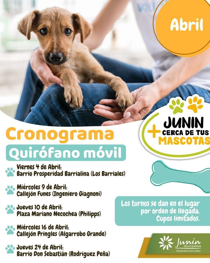 – Lugar: Dirección de Veterinaria del Municipio, calle Salvador González 525, Ciudad de Junín