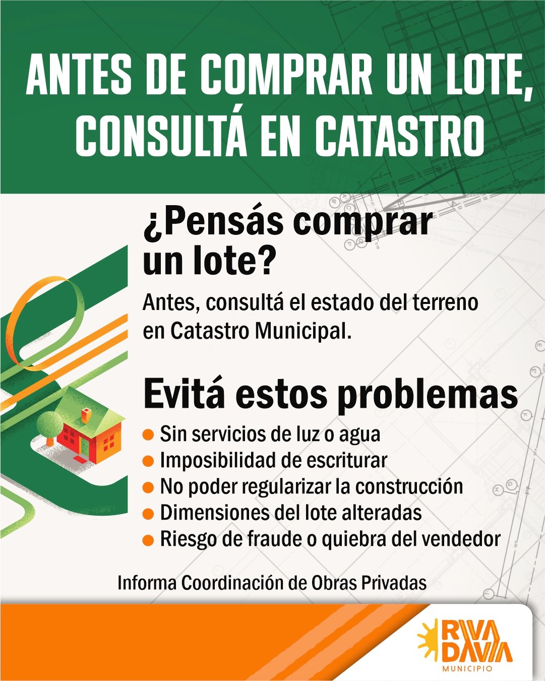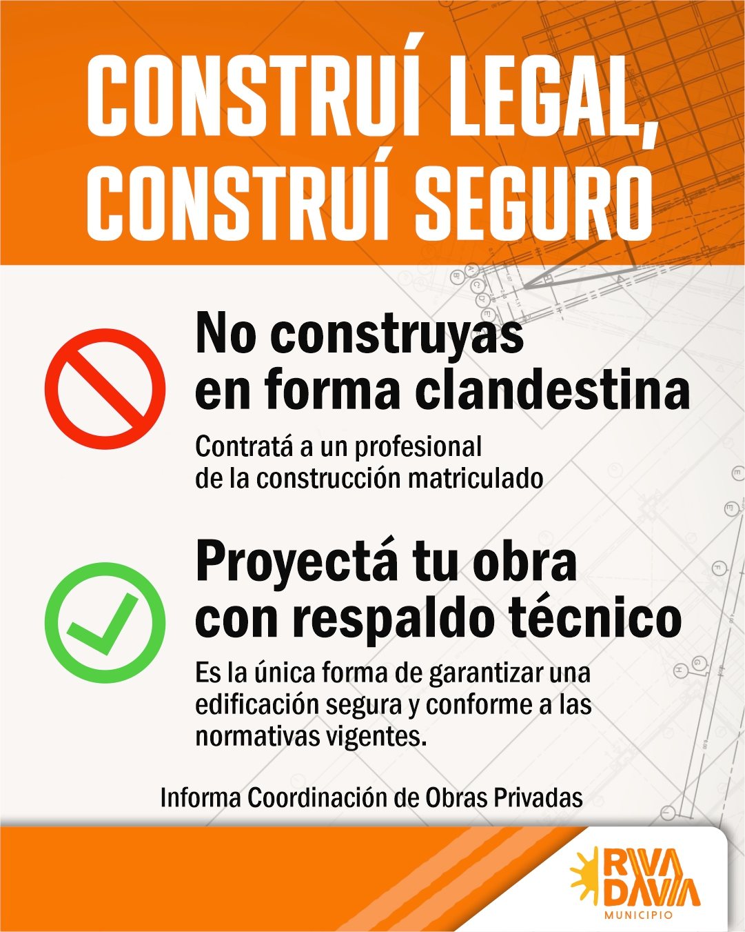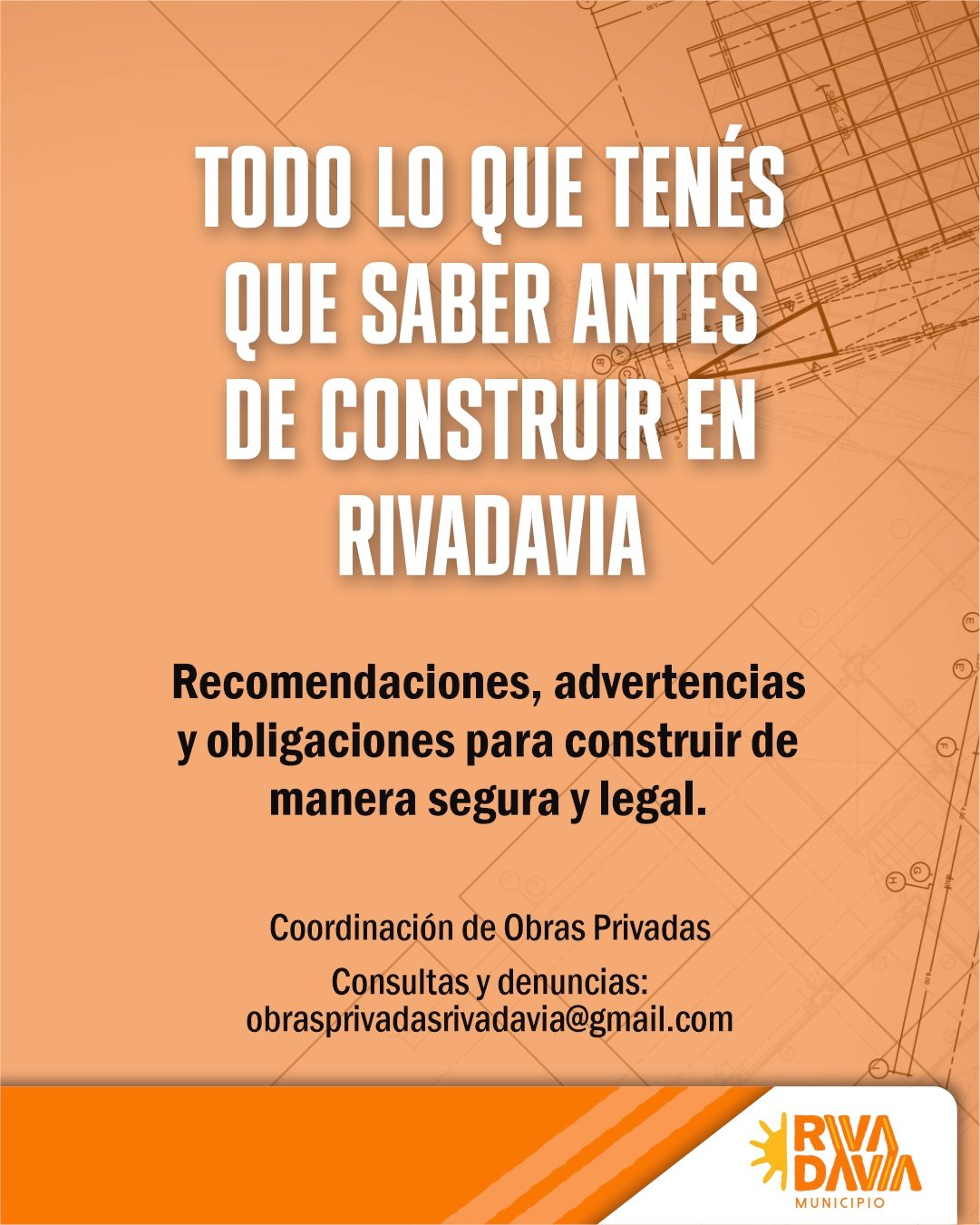 La Municipalidad de Rivadavia recuerda a vecinos, vecinas, profesionales y propietarios la importancia de realizar construcciones bajo normativa vigente, priorizando la seguridad edilicia y el desarrollo urbano ordenado.