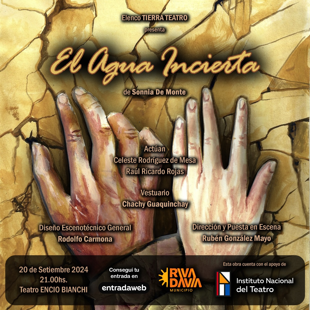 ¡No te lo pierdas! El Agua Incierta se presentará este viernes a las 21:00 en el Teatro Municipal Encio Bianchi. ¡Apoyemos al teatro mendocino y vivamos esta experiencia única.