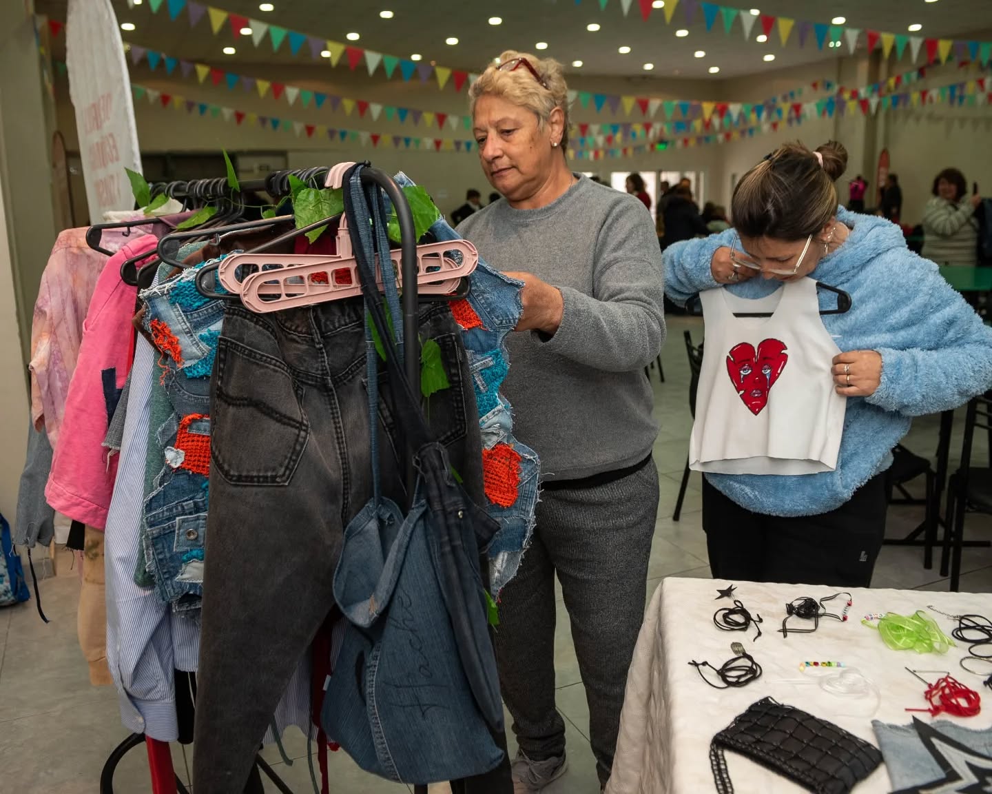 El encuentro incluyó charlas de empresas del rubro, talleres prácticos y exposición de emprendedores locales que mostraron sus técnicas para transformar ropa usada en productos con valor agregado.