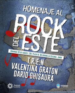 El próximo domingo 30 de marzo, desde las 🕖 19.00, la Plaza Manuel Belgrano (La Colonia) será escenario de un gran homenaje al rock del Este, con la participación de destacados músicos y bandas locales.