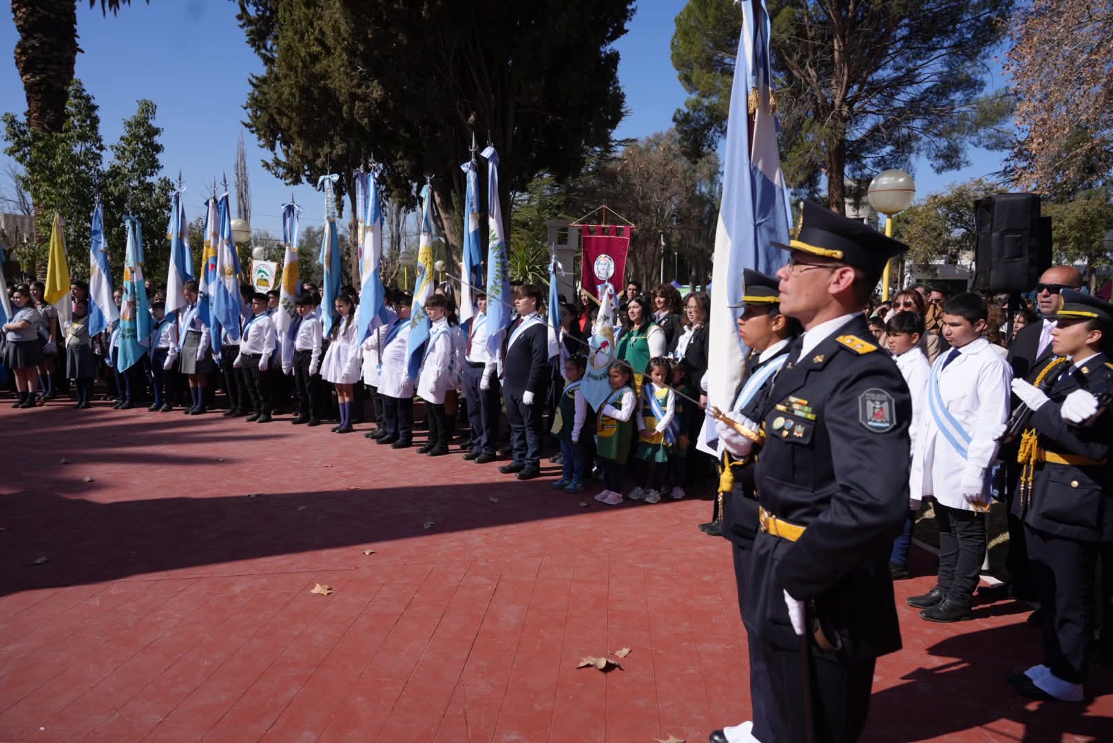 El intendente Mario Abed, junto a la comunidad de Los Barriales, vivió con orgullo esta conmemoración. También estuvieron presentes el ministro de Educación, Cultura, Infancias y DG Tadeo García Salazar, el ministro de Producción Rodolfo Vargas Arizu, el presidente del HCD Ricardo Morcos, los senadores David Sáez y Mario Ana, la reina departamental de la Vendimia Camila Sáez, la virreina y la reina del Encuentro de las Naciones, la soberana distrital y el intendente de San Martín Raúl Rufeil, además de autoridades provinciales, departamentales, policiales y escolares.
