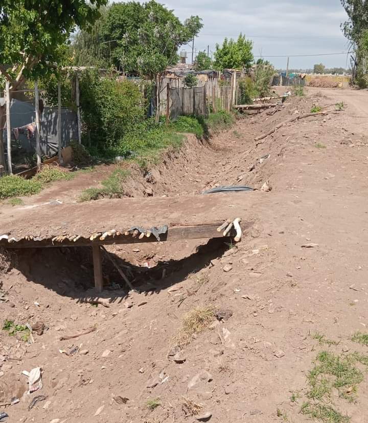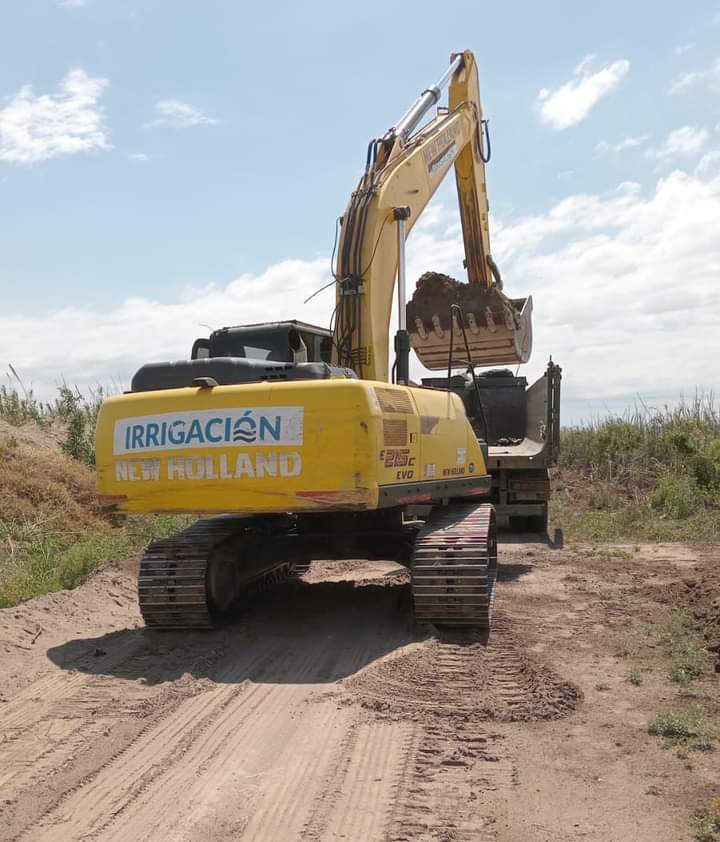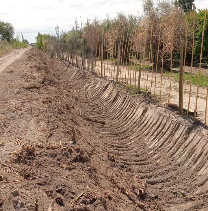 La comuna está llevando a cabo un importante trabajo de limpieza en el desagüe pluvial Sarramea, uno de los principales de la ciudad. Esta tarea es posible gracias a la colaboración entre la Dirección Provincial de Irrigación, que ha proporcionado una excavadora sobre orugas, y la Comuna, que ha aportado camiones batea.