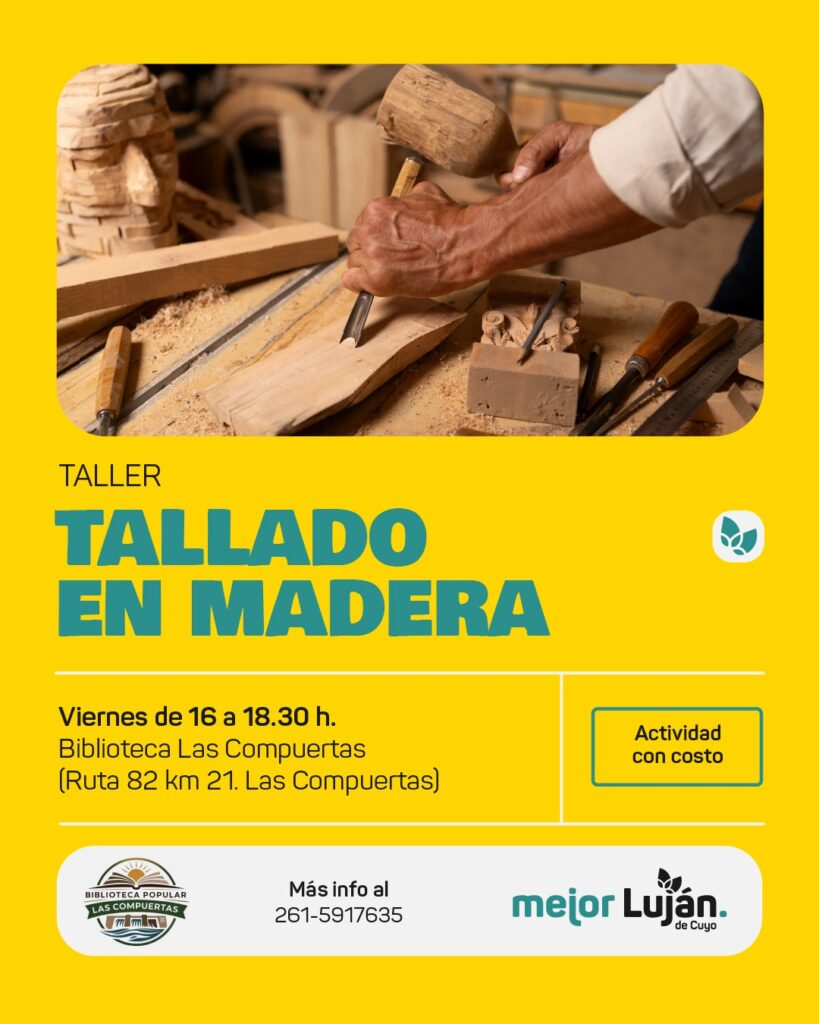 La Municipalidad de Luján de Cuyo invita a participar de un taller de tallado en madera, una propuesta orientada a quienes deseen iniciarse o perfeccionarse en el trabajo artesanal.