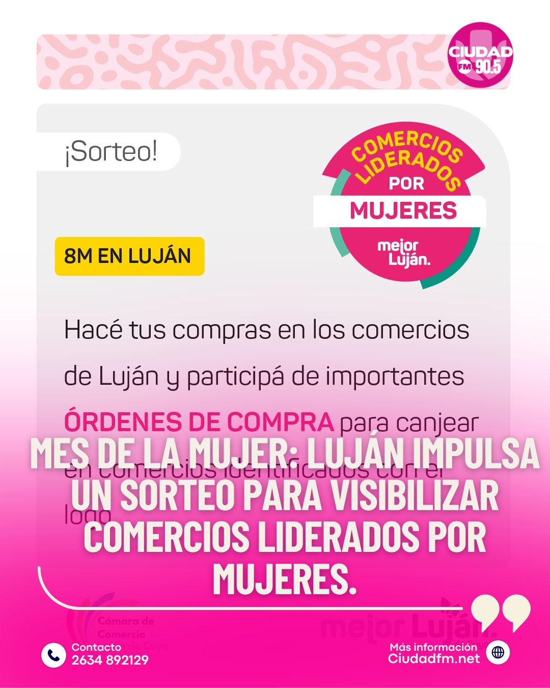 La Municipalidad de Luján de Cuyo informa a la comunidad que, en el marco de las actividades por el Mes de la Mujer, se realizará un sorteo especial con el objetivo de promover el consumo en comercios locales liderados por mujeres.
