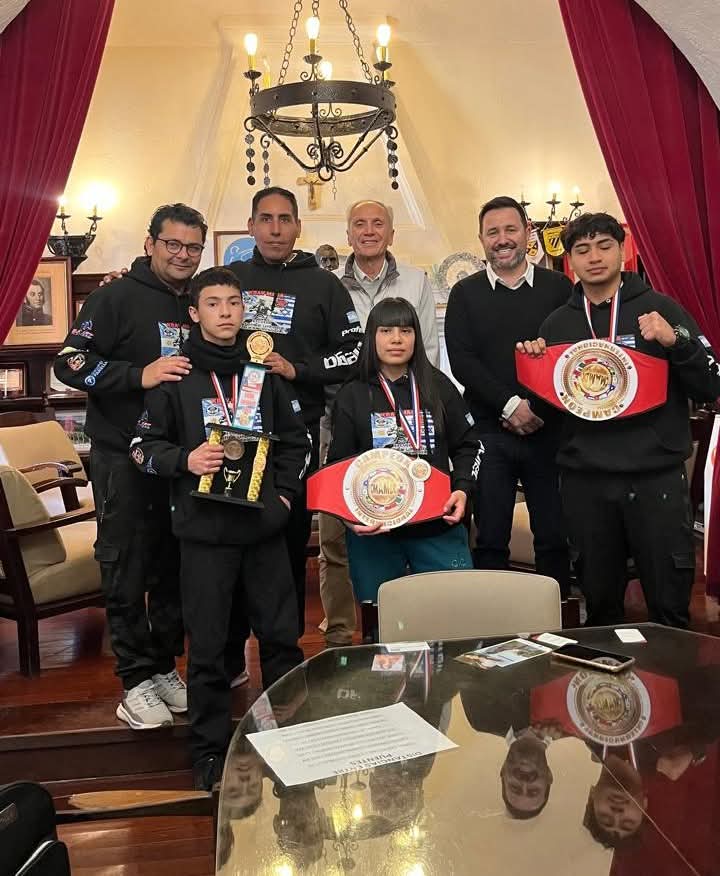 El intendente. Raúl Rufeil. recibió al equipo local de krav maga, que representó al país en un torneo internacional de La Serena, en Chile. Viajaron con apoyo de la Comuna y volvieron con podios: dos campeones internacionales de 16 y 18 años y un subcampeón de 14.
