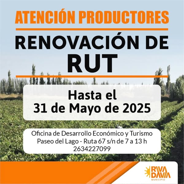 La renovación o inscripción en el RUT no es solo un trámite administrativo: es una apuesta por un Rivadavia más ordenado, más productivo y más sostenible.