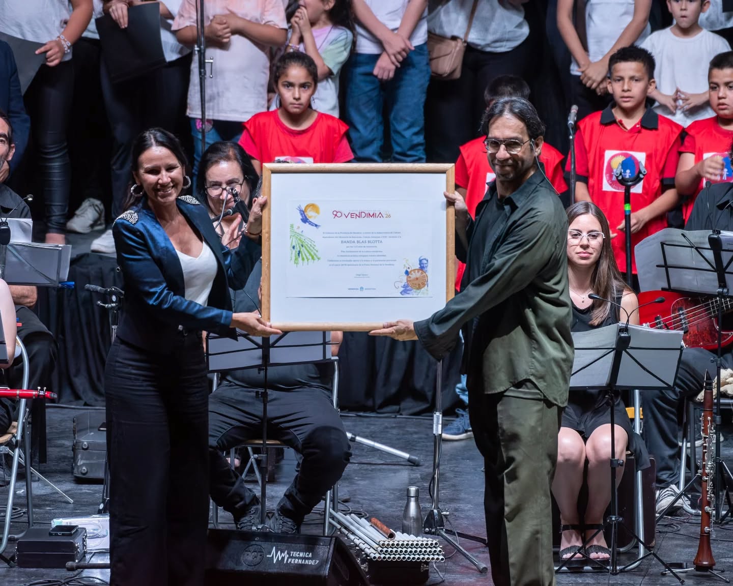 Durante la velada, la Dirección de Cultura del Gobierno de Mendoza, a través de la Directora de Gestión Territorial, Laura Uano, entregó un diploma de reconocimiento por el aporte cultural que la Banda Municipal Blas Blotta realiza desde hace 122 años en toda la provincia.