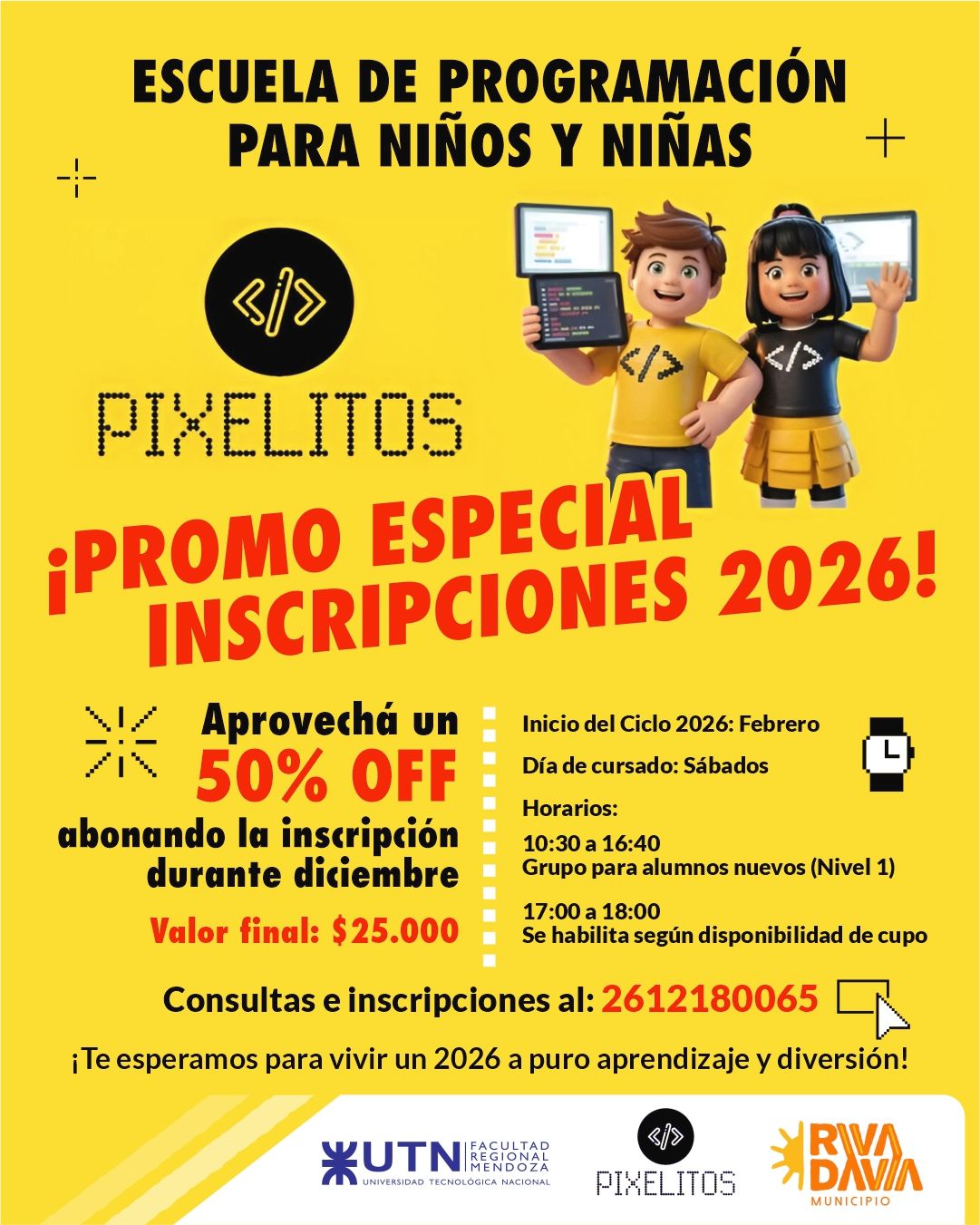 Rivadavia vuelve a apostar por la educación tecnológica con una propuesta que busca acercar la programación a niñas y niños del departamento. La Escuela de Programación anunció una promoción especial para quienes se inscriban durante diciembre: un descuento del 50% en la matrícula, dejando el valor final en $25.000.