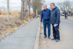 Por un lado, se construye un veredín, en el costado este de la avenida Corrientes. Se trata de la respuesta a un viejo reclamo de los vecinos, que siempre transitan por la calzada, con el riesgo que eso implica. También se está haciendo la toma de agua, para regar la plaza del barrio con agua del canal.