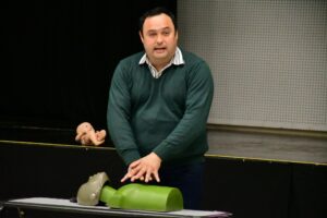 Durante el curso, los participantes recibieron instrucción teórica y práctica sobre cómo proceder ante una situación de paro cardiorrespiratorio, con técnicas aplicadas de compresiones torácicas y maniobras de primeros auxilios.