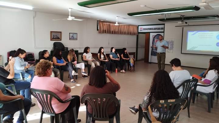 Para cerrar el taller, Fernanda Palomo y Gisella Guajardo, desde el Área de Salud Reproductiva del Hospital Perrupato, hablaron sobre la legislación que refiere a cuidados de los cuerpos gestantes, interrupción voluntaria y legal del embarazo, protección de las infancias, salud reproductiva responsable y anticoncepción, entre otros temas.