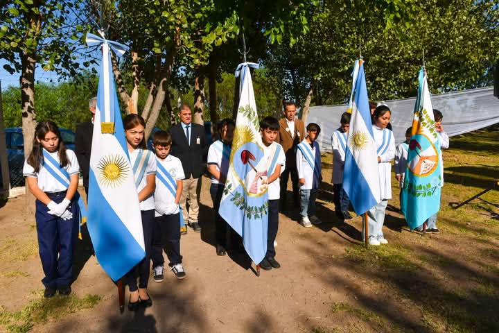 El Intendente, Fernando Ubieta, encabezó hoy el Acto Departamental por el Día del Veterano y de los Caídos en la Guerra de Malvinas, que se llevó a cabo en la Escuela Nº 1-583 «María Elvira Alcaraz de Allegranzi» de la comunidad La Menta.