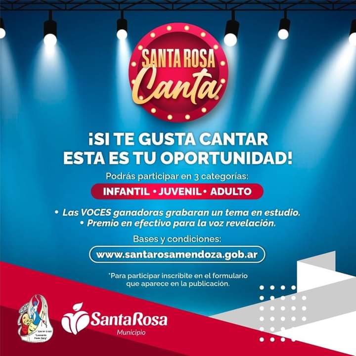 “Santa Rosa Canta” es el primer concurso que lanza Santa Rosa Municipio y la Escuela Artística Leonardo Favio Jury, el mismo busca destacar el talento vocal de los vecinos y vecinas que se desempeñen en cierta disciplina y a su vez, promover la participación de niños, jóvenes y adultos en competencias y actividades sanas y recreativas que contribuyan al desarrollo de su creatividad, demostrando sus diversas manifestaciones como una constante para mejorar su personalidad.