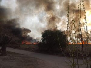 Se trata de un campo inculto abandonado sobre esa calle, que tomó fuego cerca de 15.30. “El viento corría de este a oeste y algunas llamas cruzaron la calle y dieron con una vivienda, pero logramos apagar”, comentó Herman Pérez, director de Defensa Civil de la Comuna.